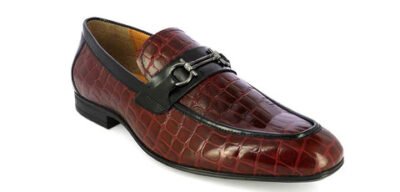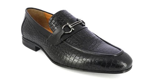 This pair of loafers in black is a great option to pair with a suit. The croc pattern and the buckle gives the pair a very glamorous look, perfect for wearing on a cocktail dinner or a wedding reception.